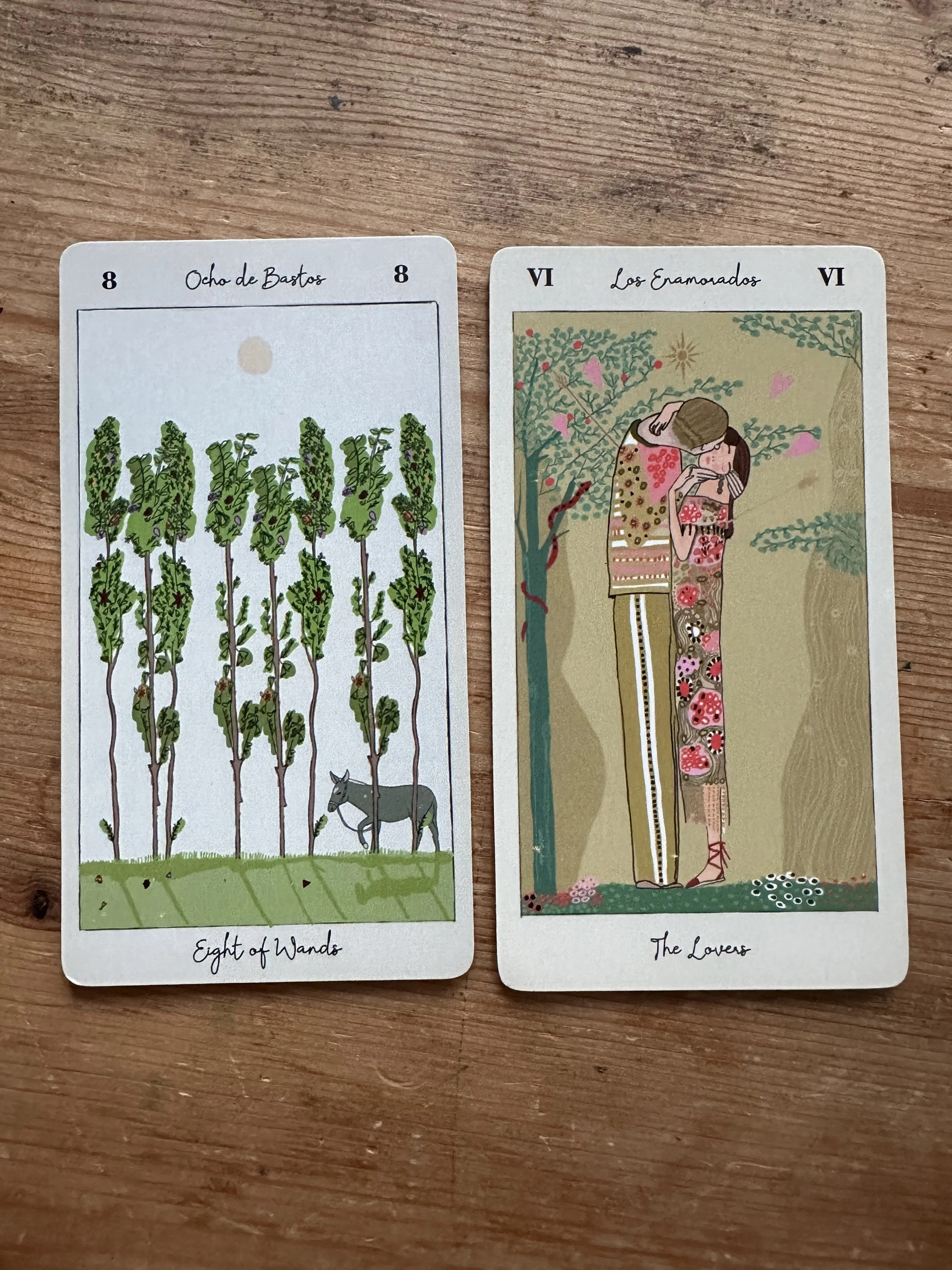 Inspired by Kate Van Horn, if you go this route, here’s how it works: Before I begin your reading, I ask each of my decks which one feels called to work with you. I do this by cutting each deck, and based on which card turns up, I can sense whether the energy of that deck is aligned with your reading.