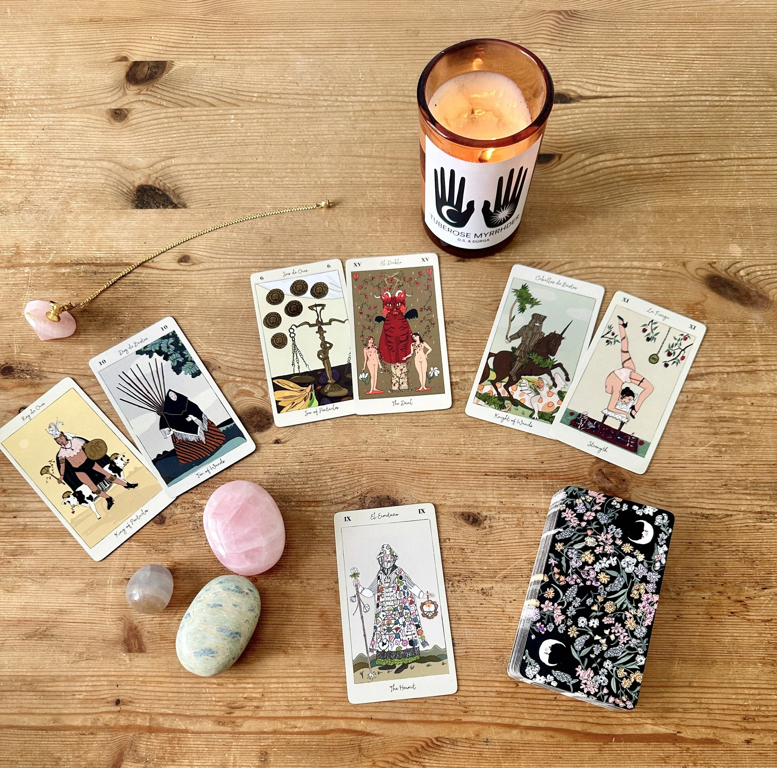 Designed by Carlota Santos, this deck is a vibrant deck with a whimsical, sketch-like style. It follows the structure of the Rider-Waite-Smith system but with a fresh, contemporary approach.